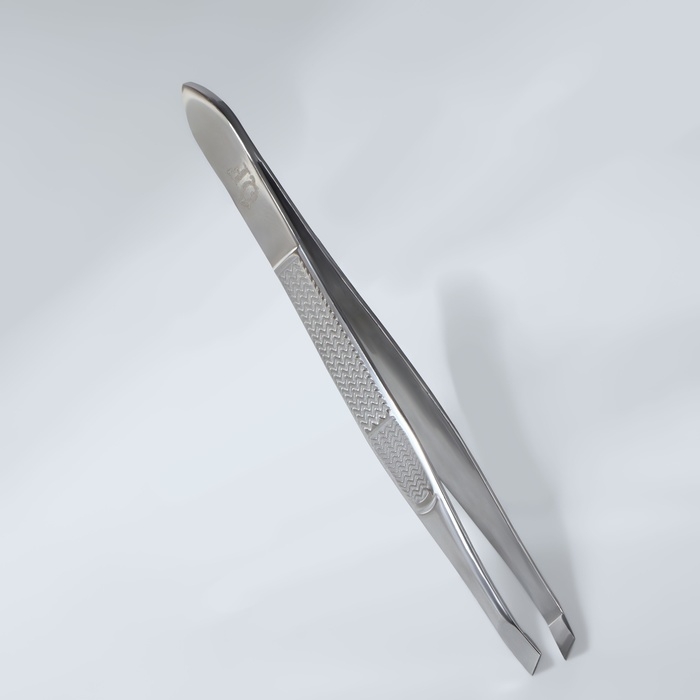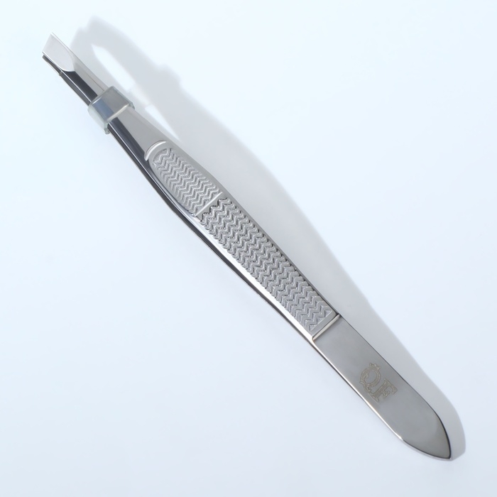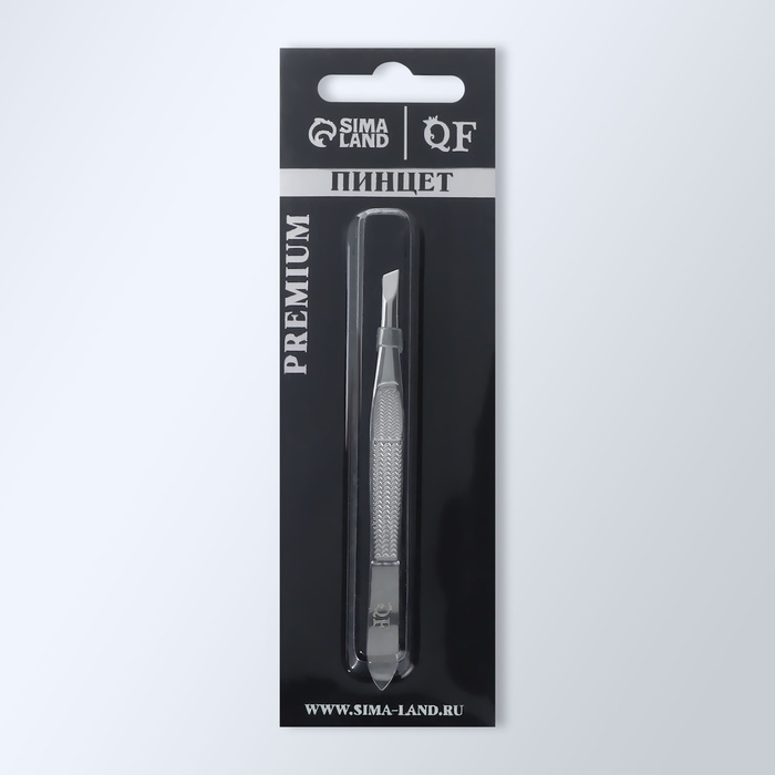 Пинцет «Premium» скошенный, узкий, 9 см, на блистере, цвет серебристый