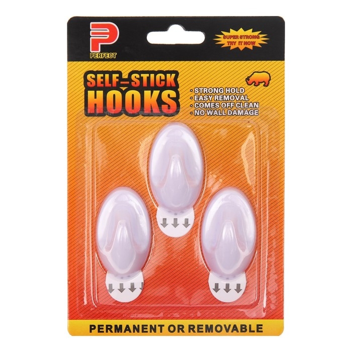 Крючки самоклеящиеся, круглые, с системой бесследного удаления, набор, 5 х 3 см, 3 шт.