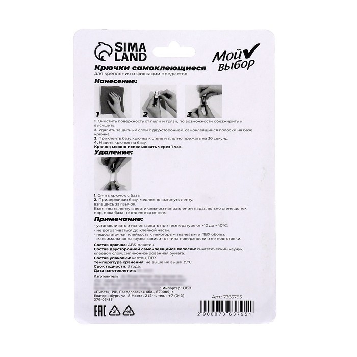 Благодаря системе бесследного удаления, крючки легко крепятся и демонтируются после использования.