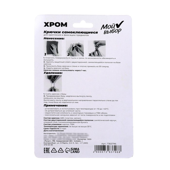 Благодаря системе бесследного удаления, крючки легко крепятся и демонтируются после использования.