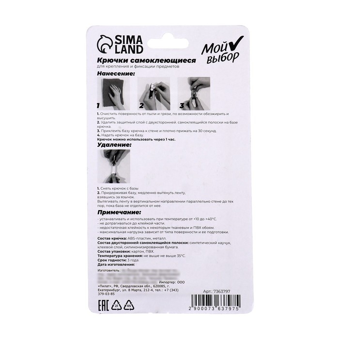 В комплекте идут 4 крючка, которые выдерживают до 0,500 кг веса.