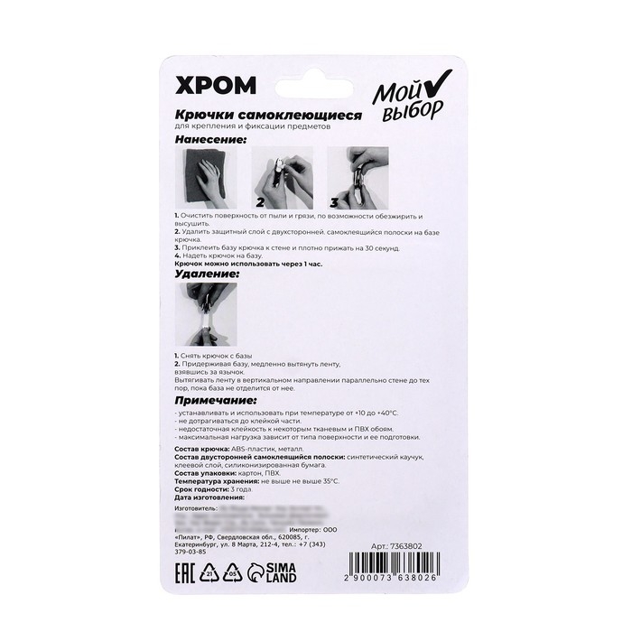 Благодаря системе бесследного удаления, крючки легко крепятся и демонтируются после использования. Хромированный дизайн позволит данным крючкам отлично вписаться в интерьер любой ванной комнаты или кухни.