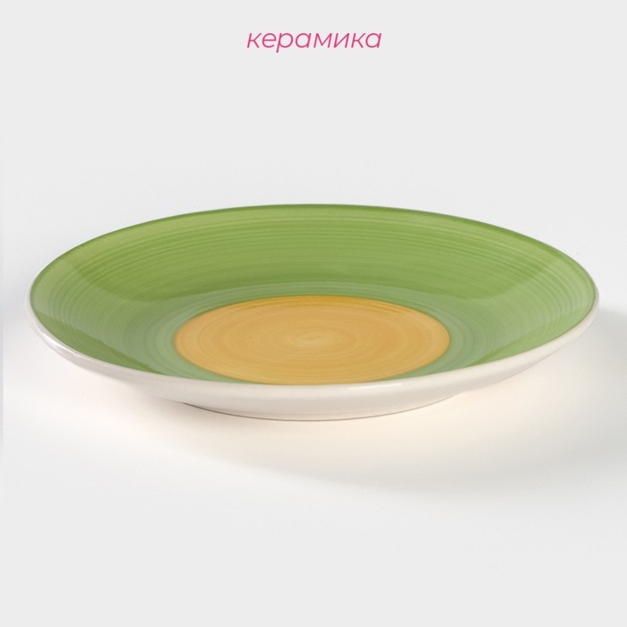 Тарелка керамическая десертная Доляна «Подсолнух», d=19 см, цвет зелёный