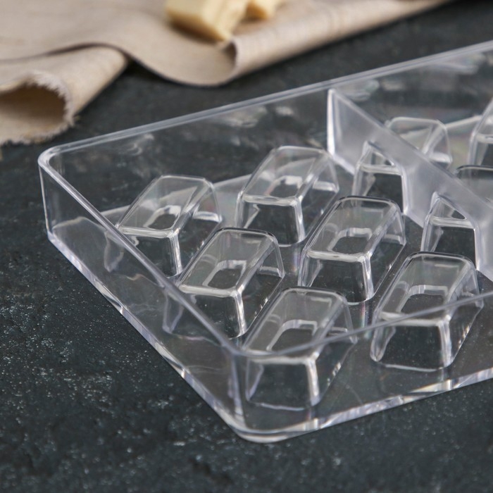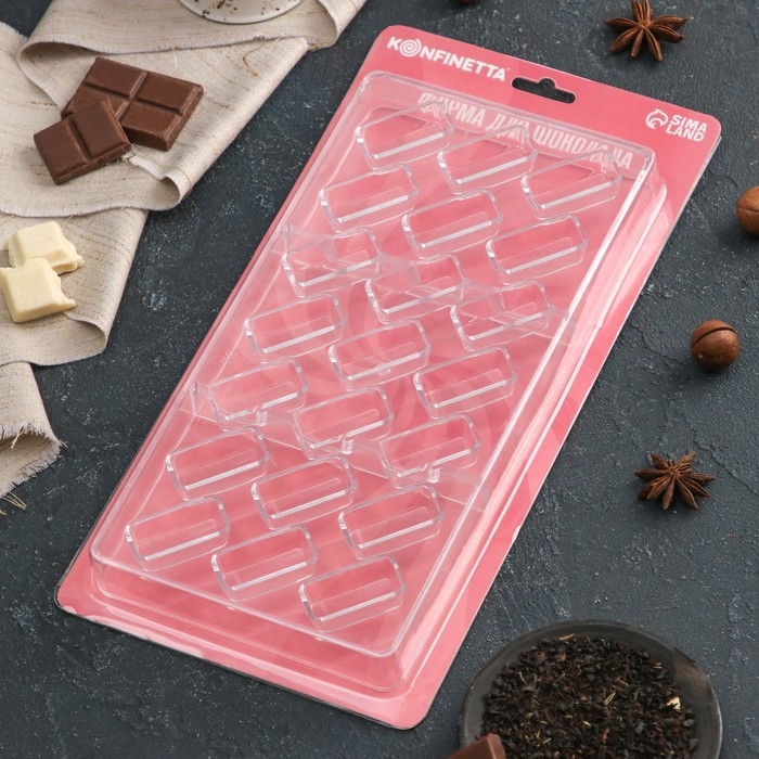 Форма для конфет и шоколада KONFINETTA «Буэно», 27,5×13,5×2,5 см, 21 ячейка 3,5×1,5×1 см, цвет прозрачный