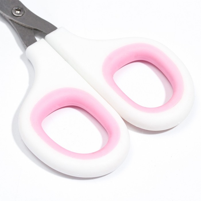 Ножницы-когтерезы с мягкими ручками, отверстие 8 мм, бело-розовые