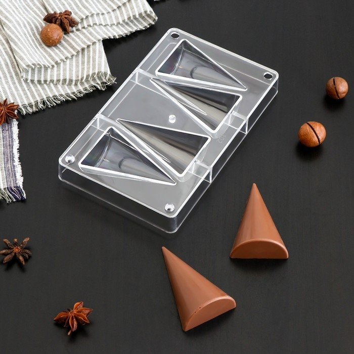 Форма для конфет и шоколада «Большой конус», 20×12×2,5 см, 4 ячейки 8×5×2,2 см, цвет прозрачный