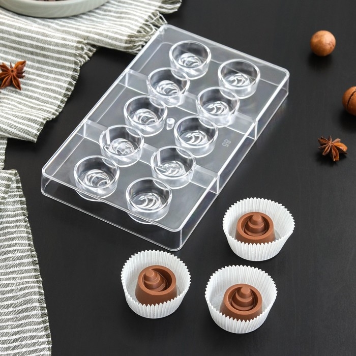 Форма для конфет и шоколада «Конфи», 20×12×2,5 см, 10 ячеек 3×1,5 см, цвет прозрачный