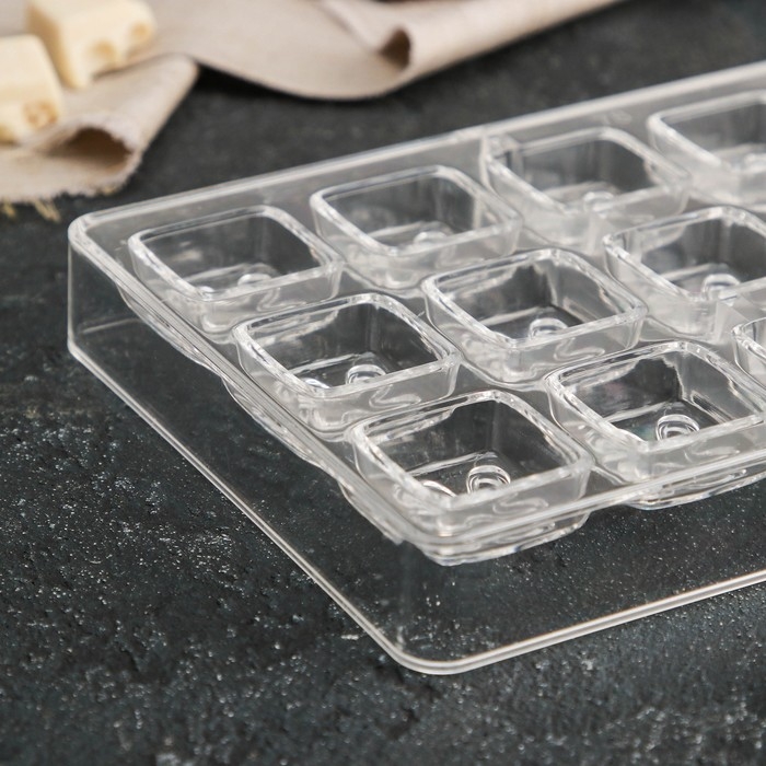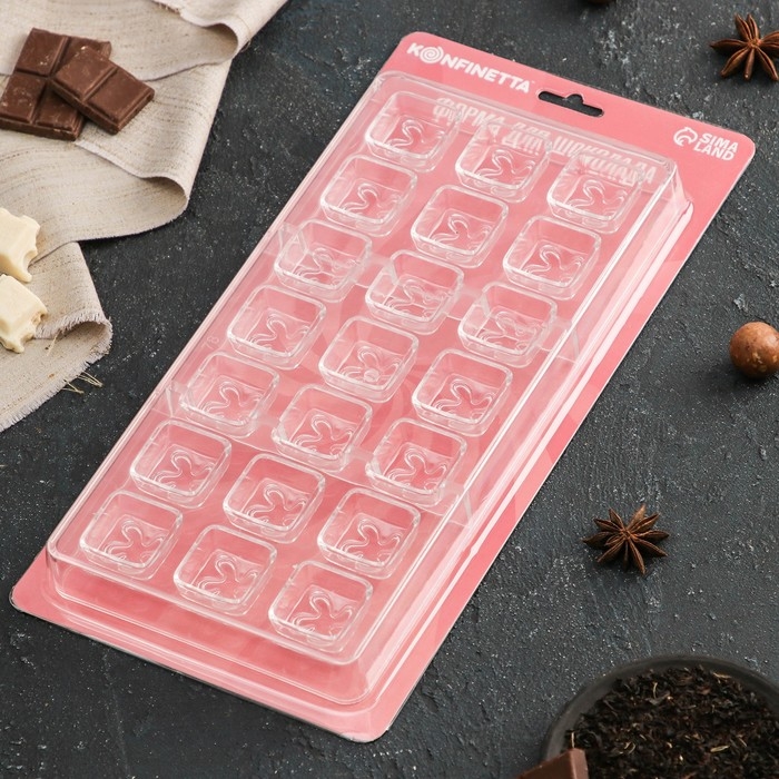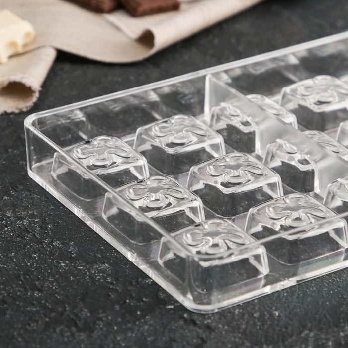 Форма для конфет и шоколада KONFINETTA «Клевер», 27,5×17,5×2,5 см, 21 ячейка 2,5×2,5×1 см, цвет прозрачный