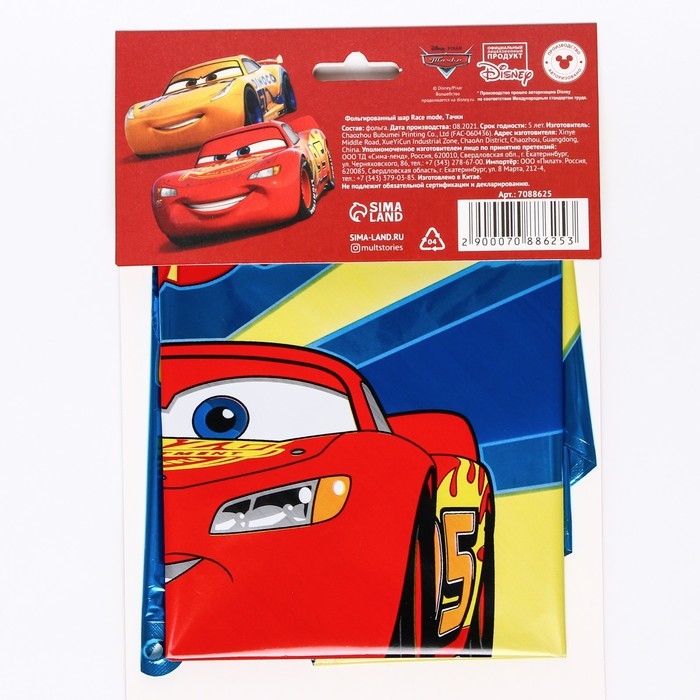 Шар воздушный "Молния", 18 дюйм, фольгированный, Тачки