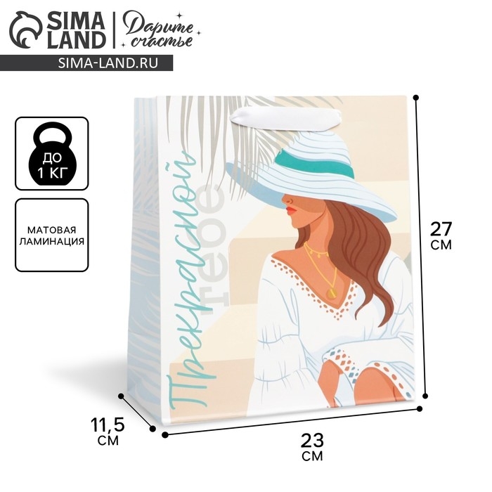 Пакет подарочный ламинированный вертикальный, упаковка, «Прекрасной тебе», ML 23 х 27 х 11,5 см