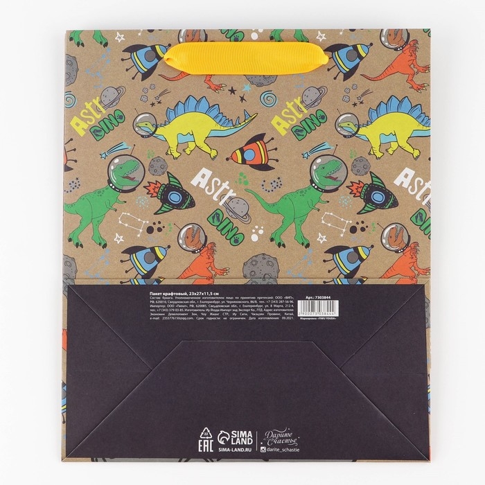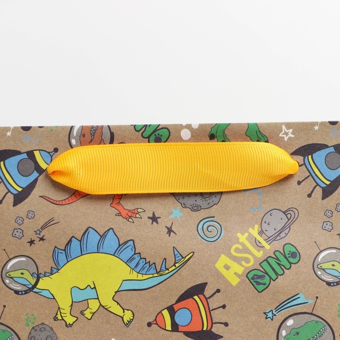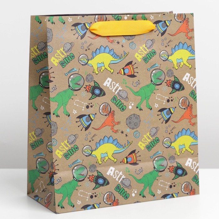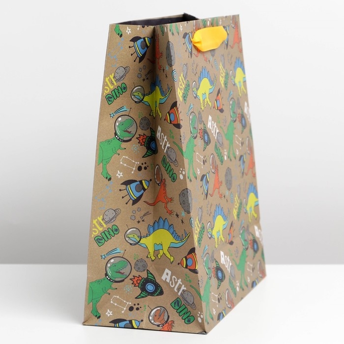 Пакет подарочный крафтовый вертикальный, упаковка, «Динозавр: Dino», ML 23 х 27 х 11.5 см
