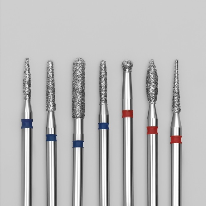 Фрезы алмазные для маникюра, 7 шт, форма и зернистость АССОРТИ