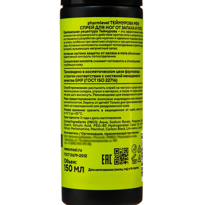 Спрей для ног Теймурова Man, 150 мл