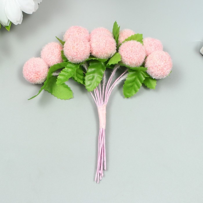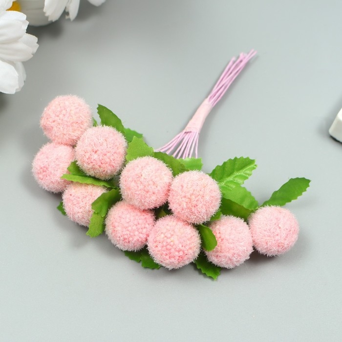 Тычинки для цветов "Шарик мохнатый розовый" d=1,5-2 см 1 букет=10 шт 10 см