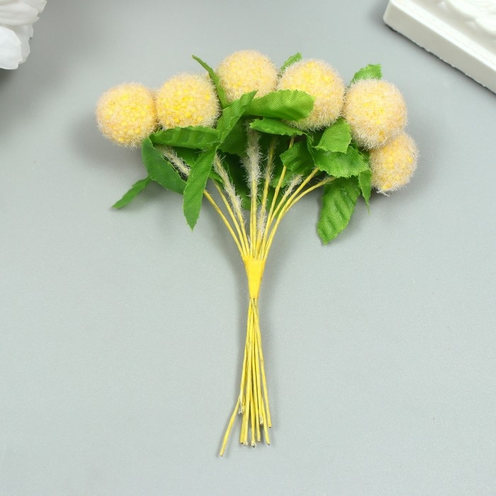 Тычинки для цветов "Шарик мохнатый жёлтый" d=1,5-2 см 1 букет=10 шт 10 см