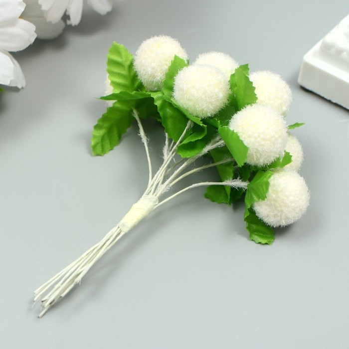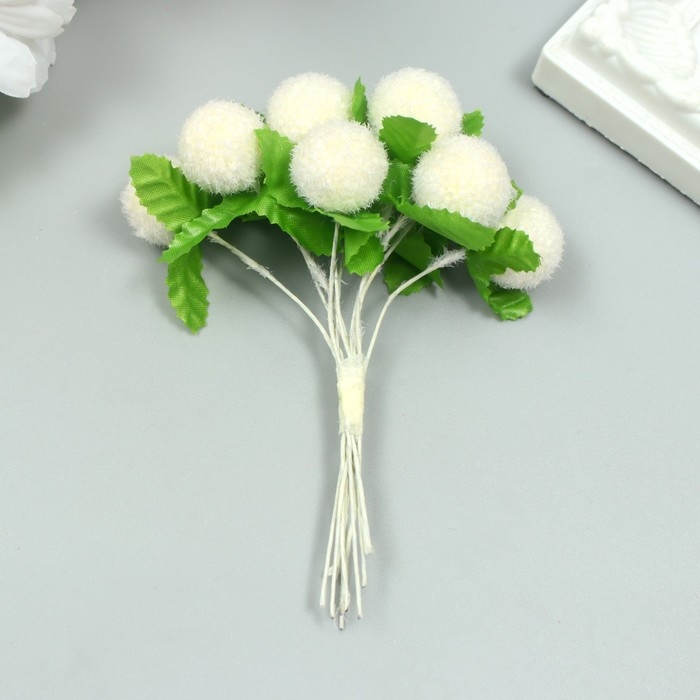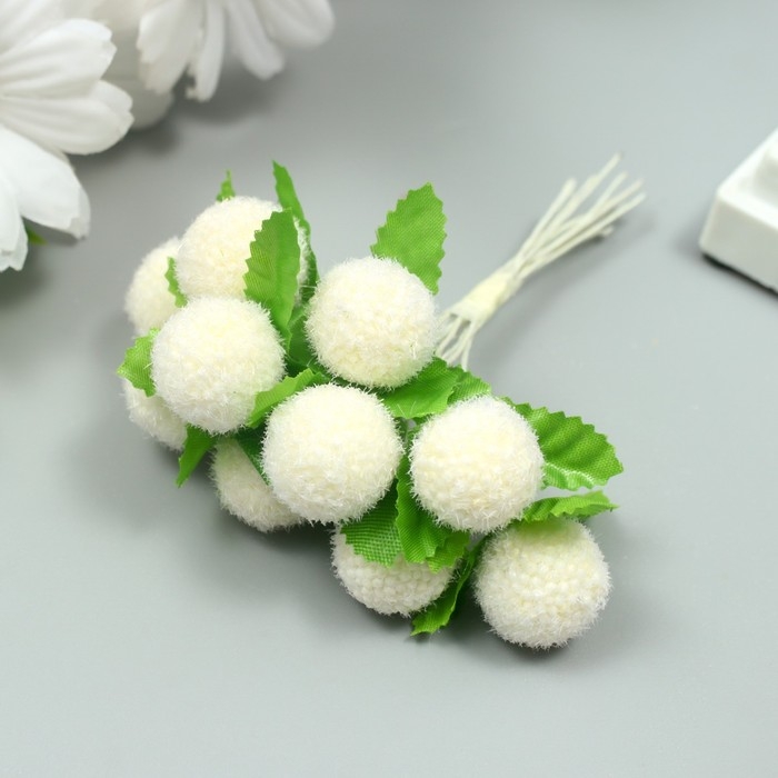 Тычинки для цветов "Шарик мохнатый молочный" d=1,5-2 см 1 букет=10 шт 10 см