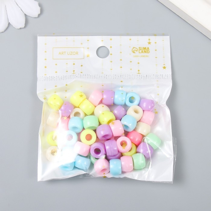 Бусины для творчества пластик "Цилиндрики" пастель набор 15 гр 0,6х0,9 см