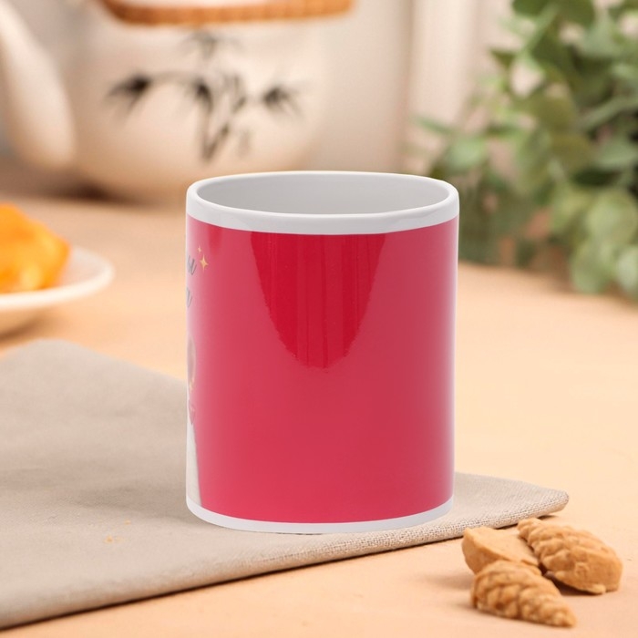 Кружка изготовлена из керамики. Рисунок нанесён методом сублимации, при котором краска проникает в верхний слой изделия, поэтому изображение получается стойким.