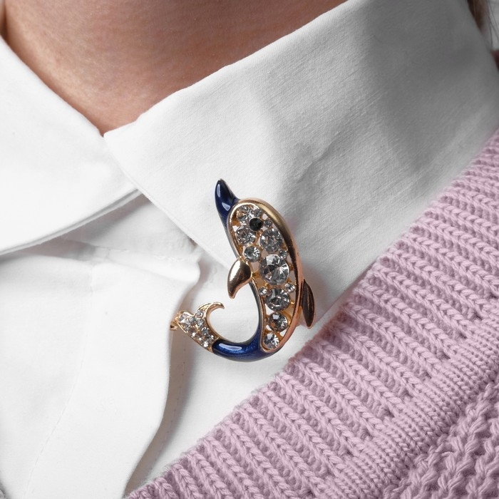 Брошь «Дельфин», цвет бело-синий в золоте