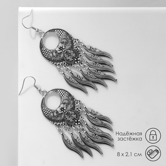 Серьги металл «Восток» богатство, цвет чернёное серебро