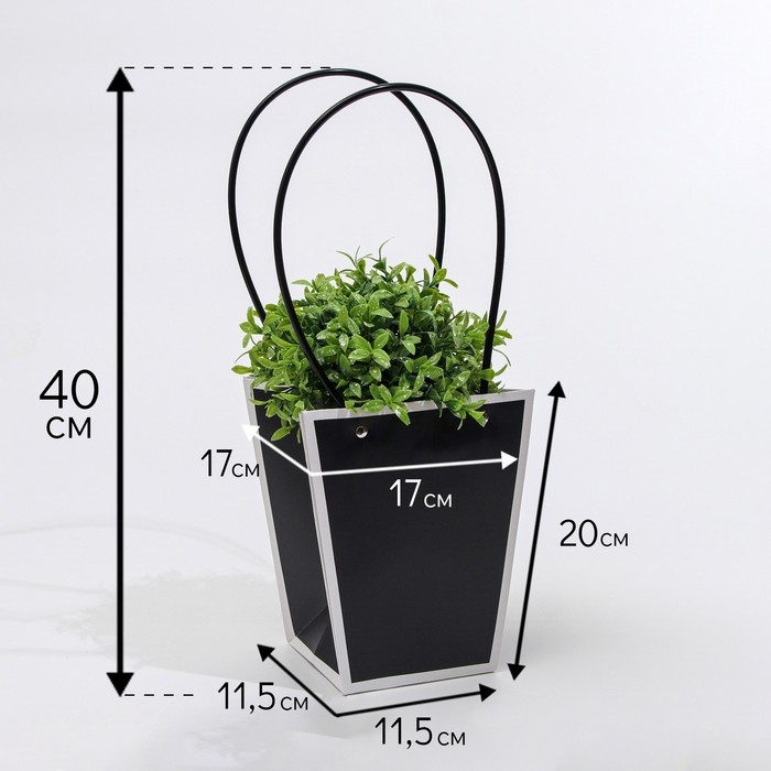 Сумка для цветов Черная влагостойкая, 17x17-11.5 x 11.5-20 см