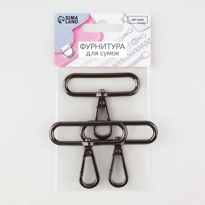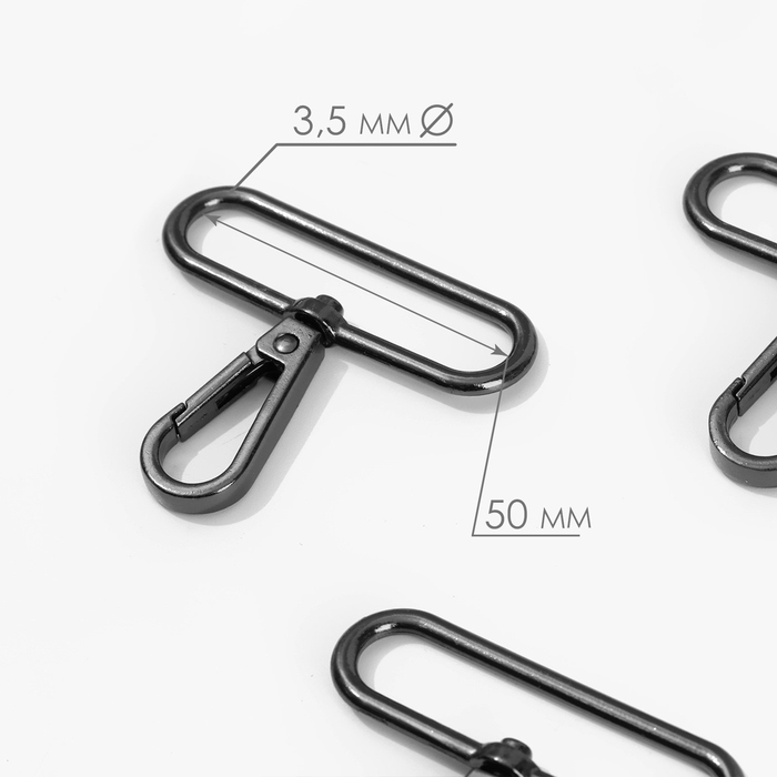 Карабин металлический, 57 × 49 мм / 50 × 3,5 мм, 3 шт, цвет чёрный
