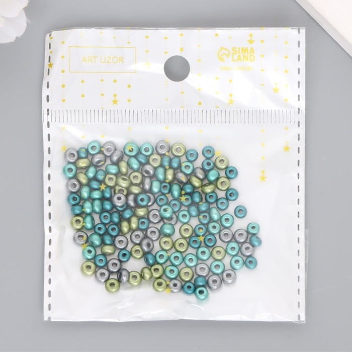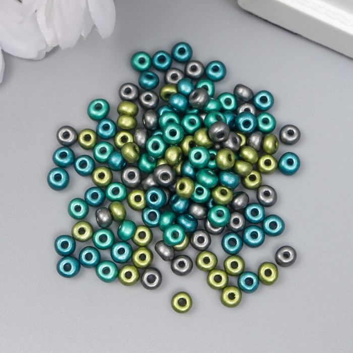 Бисер стекло 6/0 "Металлик. Меланж. Сине-зелёный" 10 гр