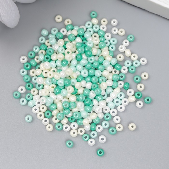 Бисер стекло 8/0 "Перламутр. Меланж зелёно-жёлтый" 10 гр