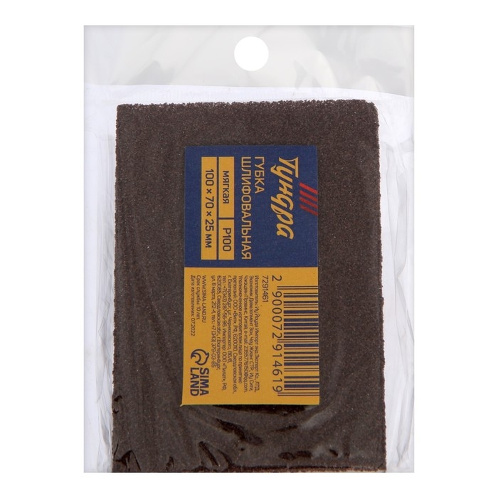 Губка абразивная шлифовальная ТУНДРА, мягкая, 100 х 70 х 25 мм, P100