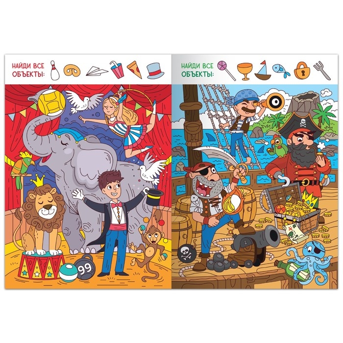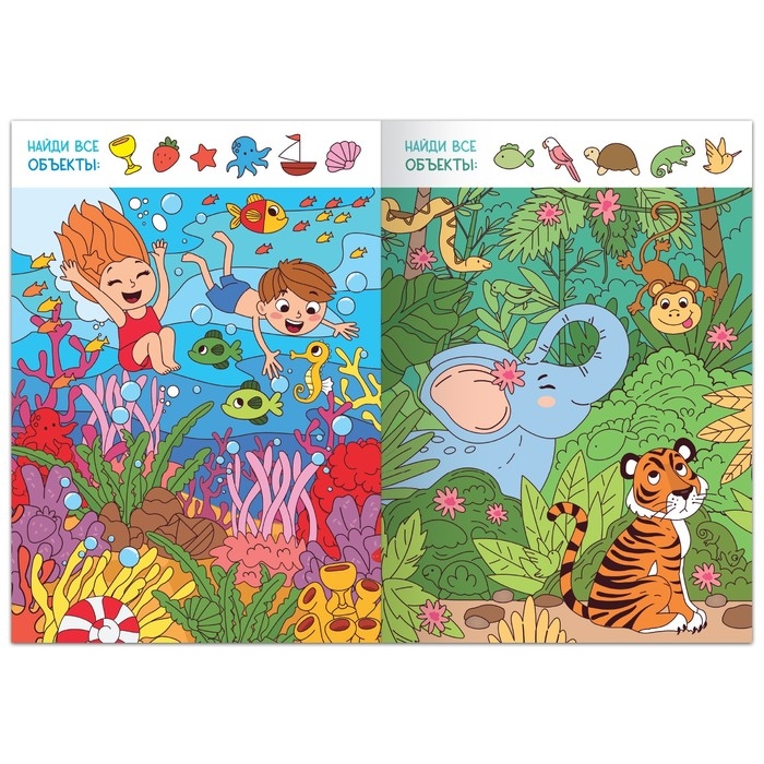 Хотите узнать, что где спрятано? Тогда скорее открывайте книжку! На каждой страничке вас ждут разные предметы для поиска. Главное правило: будьте внимательны и смотрите в оба!