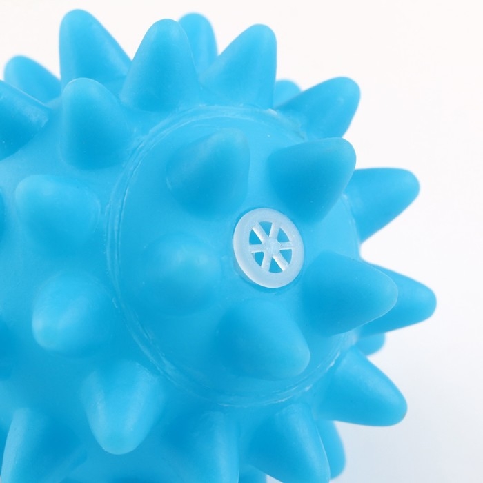 Игрушка пищащая "Мяч с шипами" для собак, 6,5 см, голубая