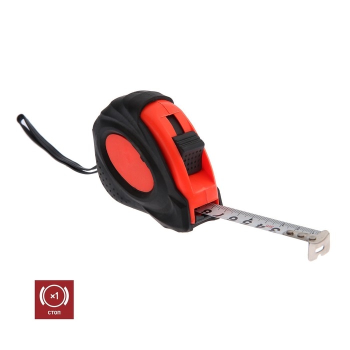 Измерительная лента выполнена из металла с чёткой прорисовкой единиц измерения на 5 метров. Специальный фиксатор позволит зафиксировать ленту на необходимой отметке.