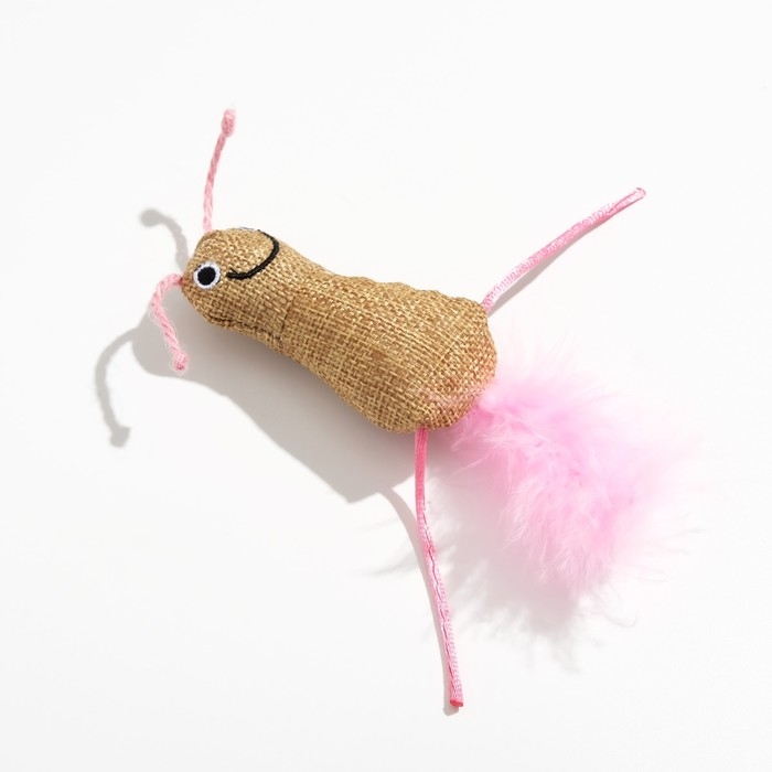 Мягкая игрушка для кошек с кошачьей мятой и пуховым хвостом "Гусеница", розовая