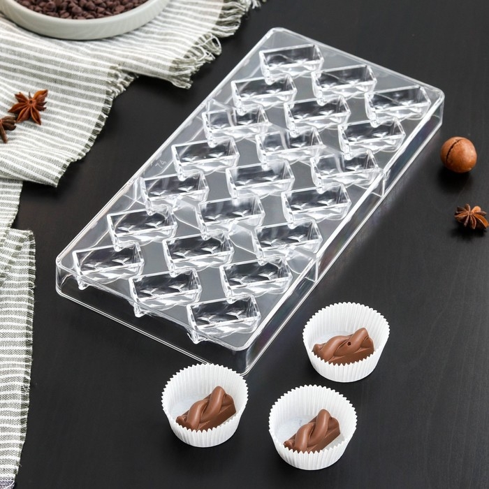 Форма для конфет и шоколада KONFINETTA «Косичка», 27,5×17,5×2,5 см, 21 ячейка 3,7×1,5×1,5 см, цвет прозрачный