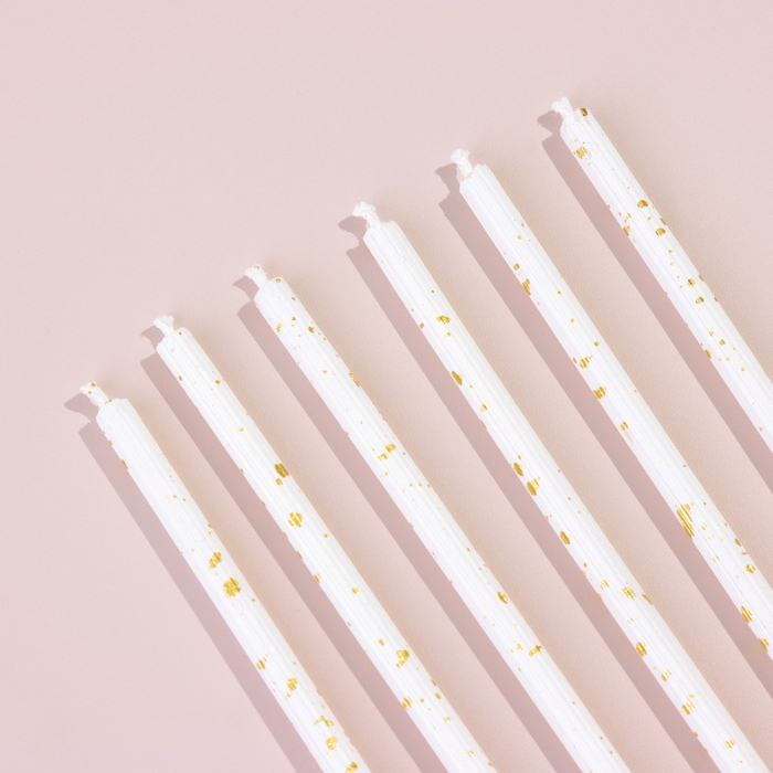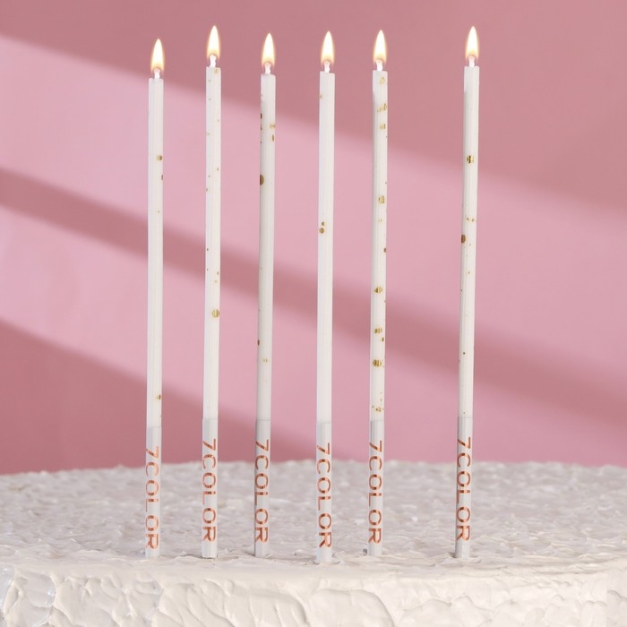 Набор свечей в торт, 6 штук "Исполнение желаний", 16,5 см, белый с золотом