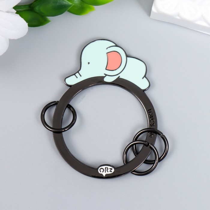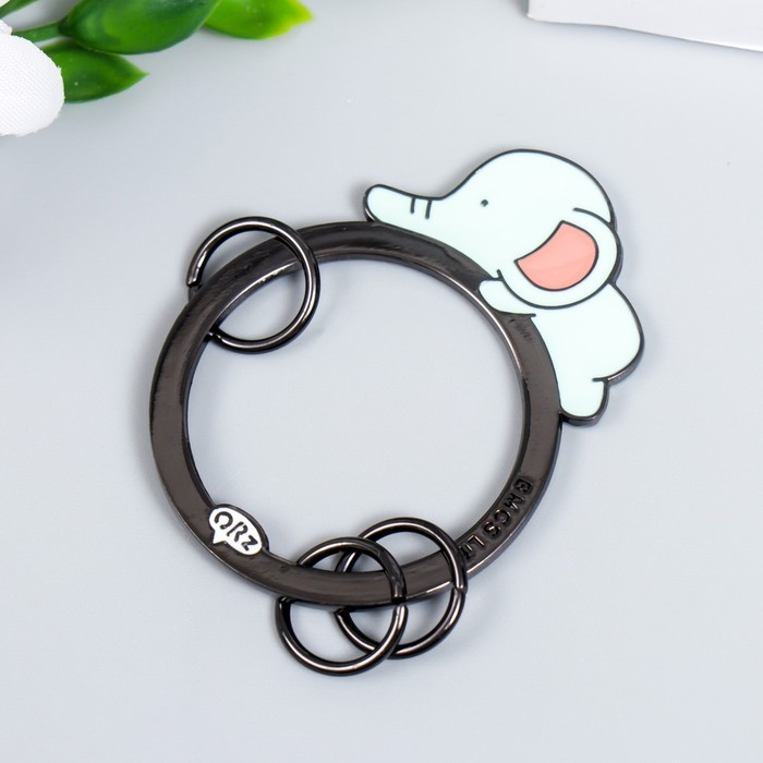 Брелок-ключница металл "Голубой слонёнок лежит" эмаль 5,5х4,2 см