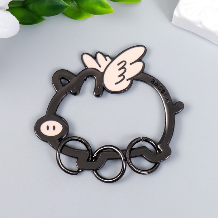 Брелок-ключница металл "Свинка с крылышками" эмаль 4,5х5,5 см