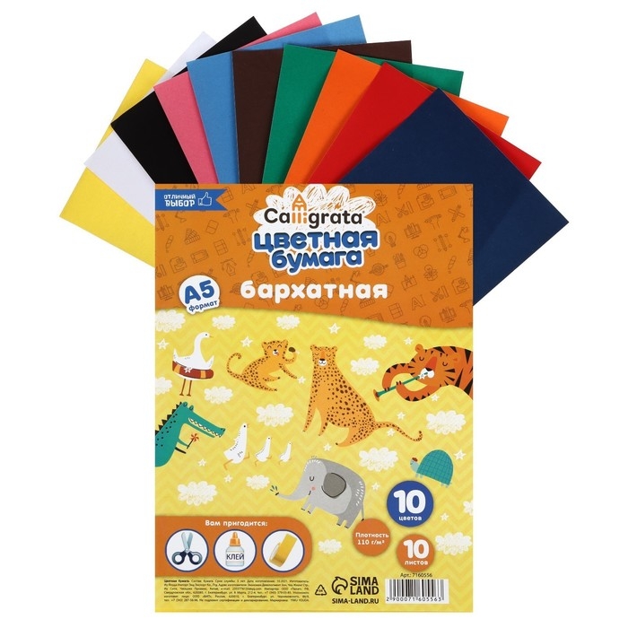 Набор бумаги бархатной А5, 10 листов, 10 цветов, плотность 110г/м2