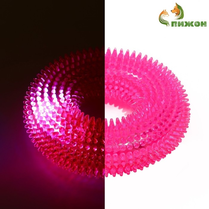 Игрушка светящаяся для собак "Жевательное кольцо", TPR, 12 см, розовая