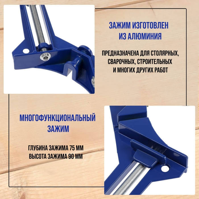 Струбцина угловая ТУНДРА, 90°, винтовой зажим, алюминиевая, 75 мм