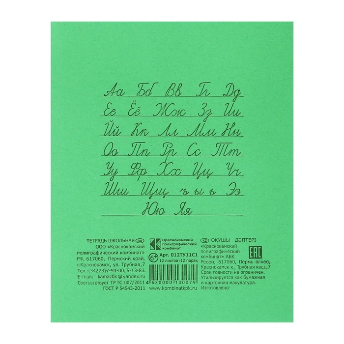 Комплект тетрадей из 20 штук, 12 листов в линию КПК "Зёленая обложка", блок офсет, белизна 90%