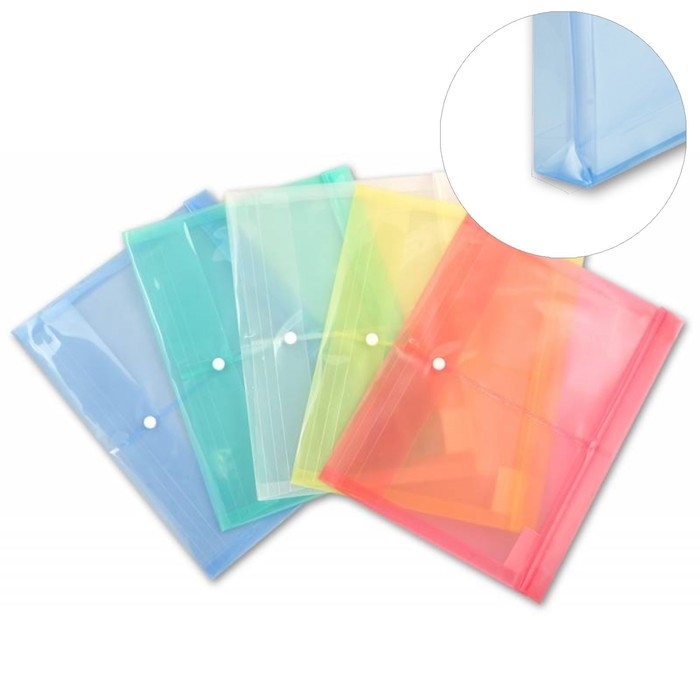 Папка конверт на кнопке А4, 180 мкм, Calligrata, полупрозрачная, с вертикальным расширением, микс