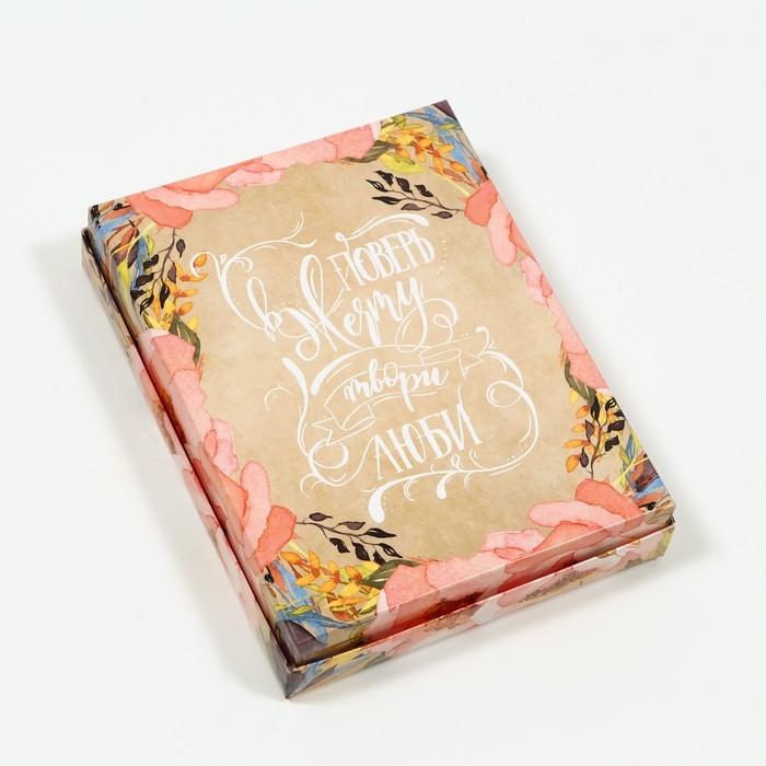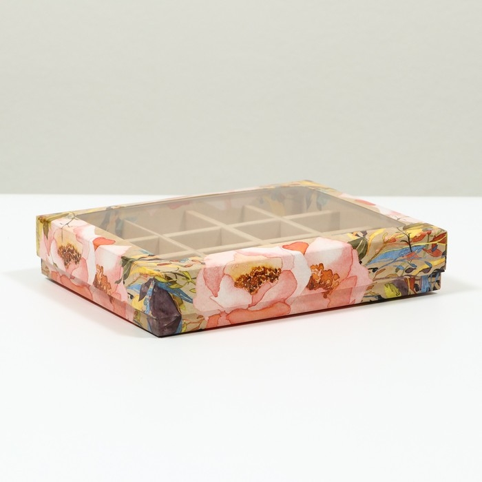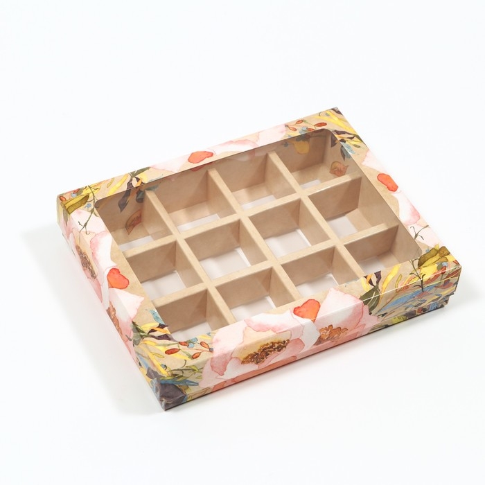 «Коробка для конфет, 12 шт, 19 х 15 х 3,5 см, крафт цветы»