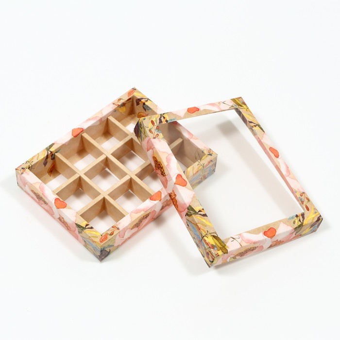Коробка для конфет, кондитерская упаковка, 9 ячеек, «Нежность внутри», 14.7 х 14.7 х 3.5 см