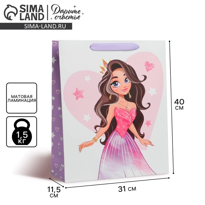 Пакет подарочный ламинированный вертикальный, упаковка, «Принцесса», L 31 х 40 х 11,5 см