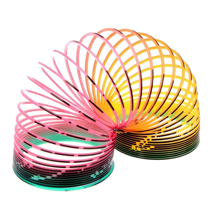 Пружинка наполнит день малыша новыми увлекательными и развивающими играми. Просто перекидывайте её из руки в руку или растягивайте, как гармошку: она настроит на творческий лад и успокоит нервы. А ещё красочная пружинка умеет самостоятельно передвигаться — шагать вниз по ступенькам. Количество её трюков безгранично!