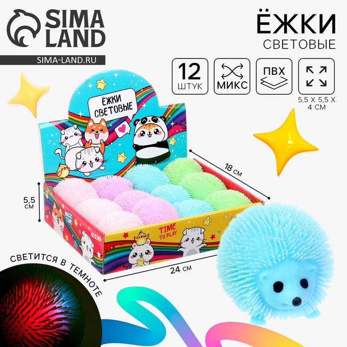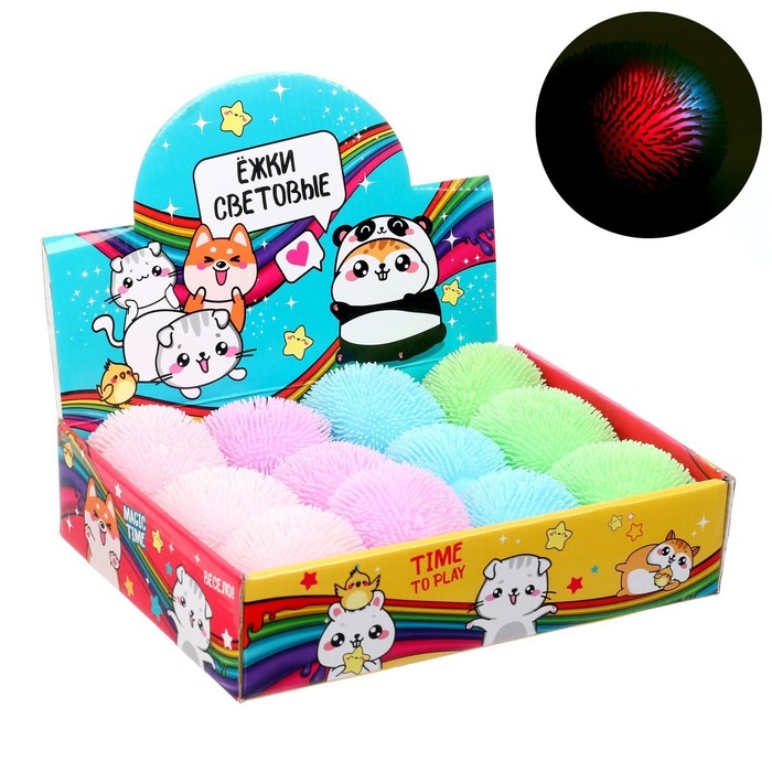 Мяч детский резиновый ёжка световой «Ёжик», цвета МИКС, в шоубоксе