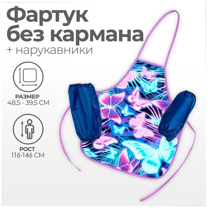 Фартук для труда + нарукавники, 485 х 395/250 х 160 мм, рост 116-146 см, Calligrata, "Бабочки"