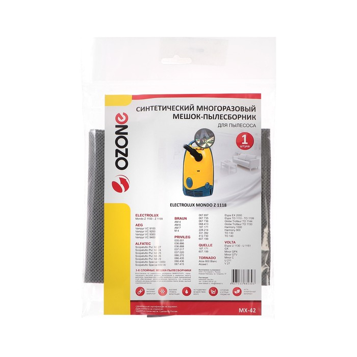 Мешок-пылесборник MX-42 Ozone многоразовый для пылесоса, 1 шт