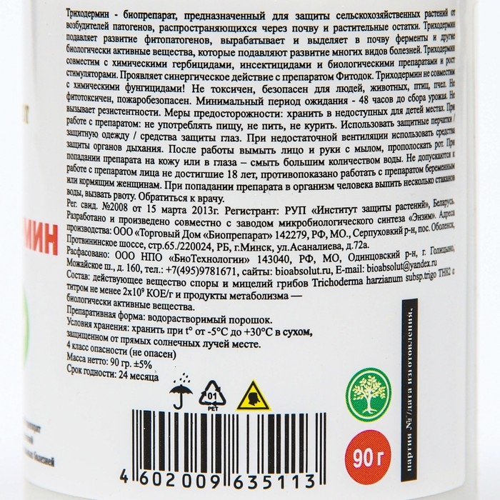 Триходермин - биопрепарат, предназначенный для защиты сельскохозяйственных растений от возбудителей патогенов, распространяющихся через почву и растительные остатки.